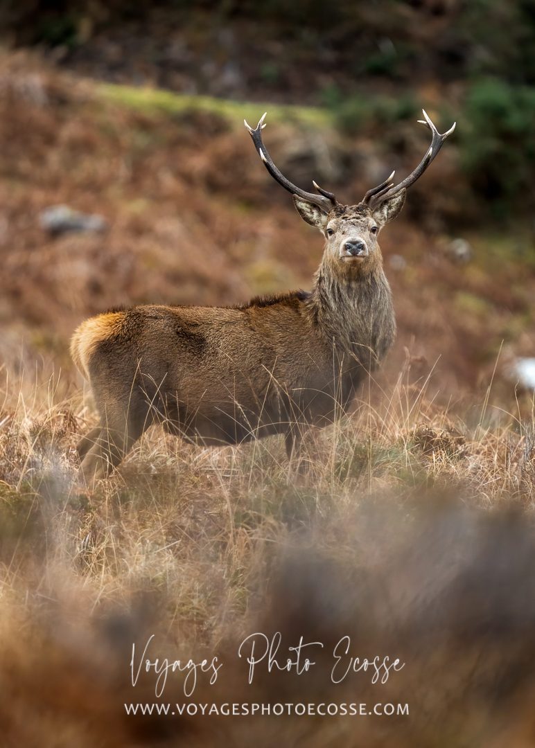 Rejoignez-moi pour un stage photo animalière consacré au cerf, animal majestueux, si caractéristiques de l’Écosse.
